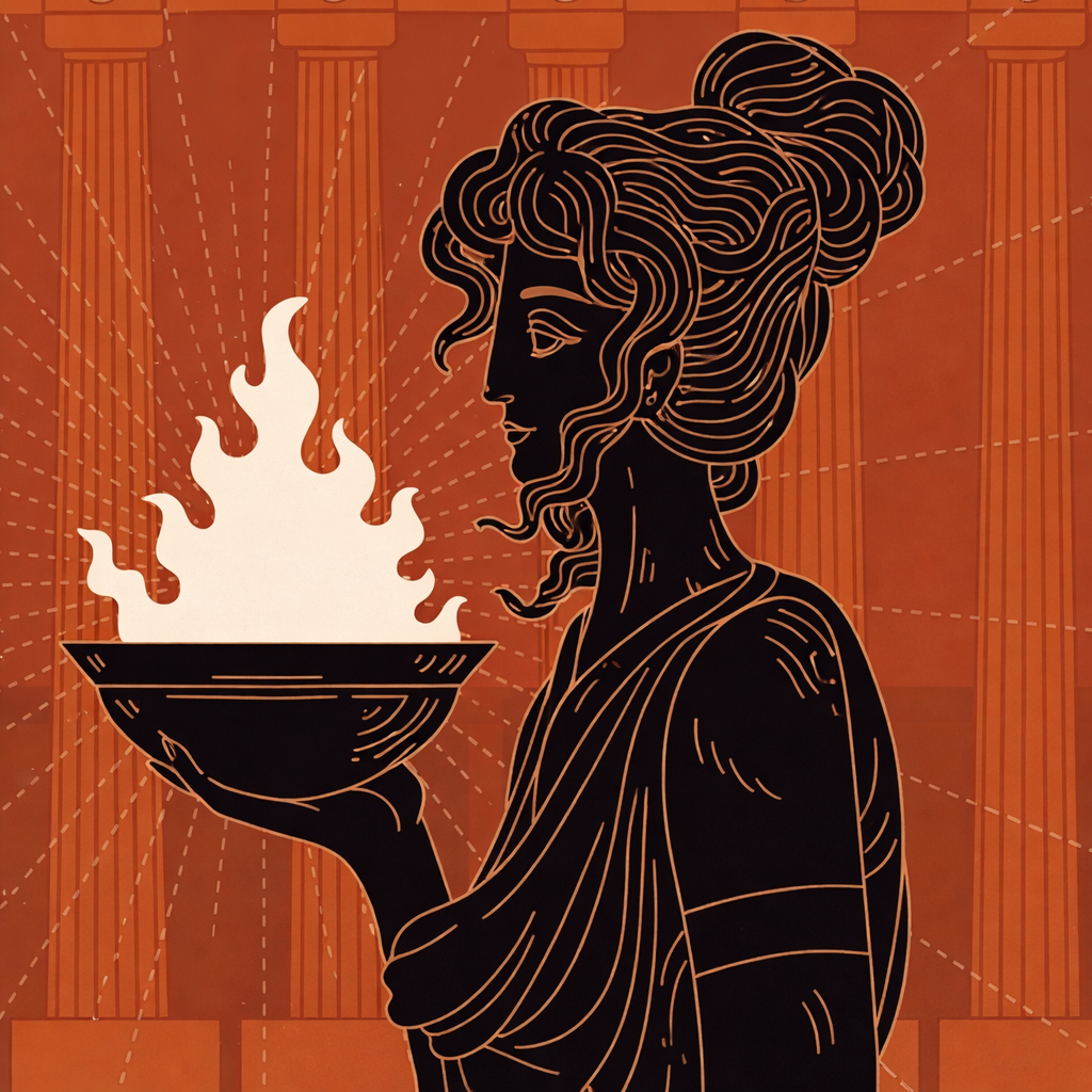 Dans la mythologie grecque, Hestïa est la déesse du foyer, du feu sacré et de la chaleur protectrice. Elle symbolise le réconfort, la stabilité et le soin que l’on s’accorde lorsque le monde extérieur devient trop intense.